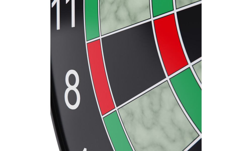 Диаметр мишени составляет 41 см, а диаметр игрового поля - 38 см. Мишень крепится на стену при помощи специального отверстия, что позволяет удобно зафиксировать её.